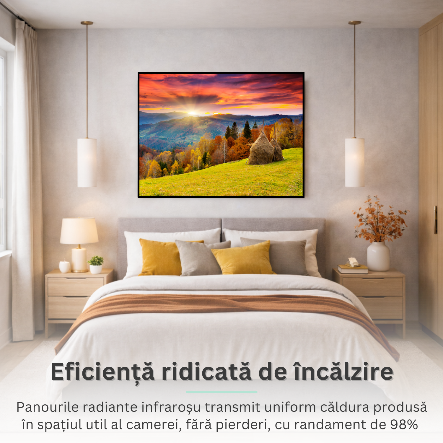 Unabhängig vom Stil Ihres Zuhauses werden NovoSun Art-Strahlungsplatten zum Mittelpunkt Ihrer Inneneinrichtung. Die angenehme Wärme und das wohlige Ambiente werden zu einem integralen Bestandteil Ihres täglichen Erlebnisses. Sie können sie wahlweise als Hauptheizquelle oder als Ergänzung zu Ihrem bestehenden System nutzen und so die optimale Temperatur aufrechterhalten.